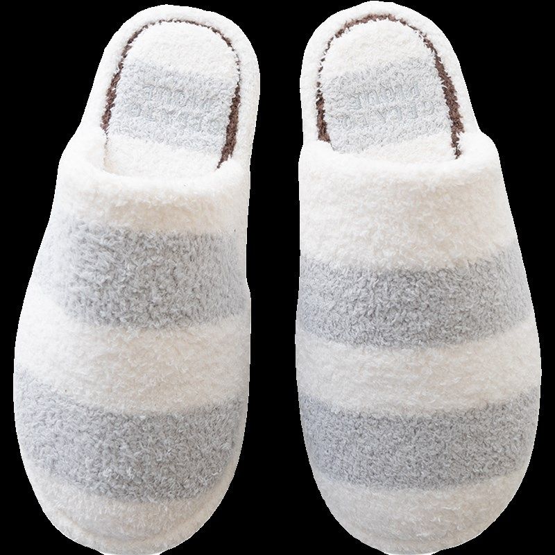 云朵里商店 软绵绵羽毛绒干净简约条纹居家静音保暖拖鞋情侣拖鞋