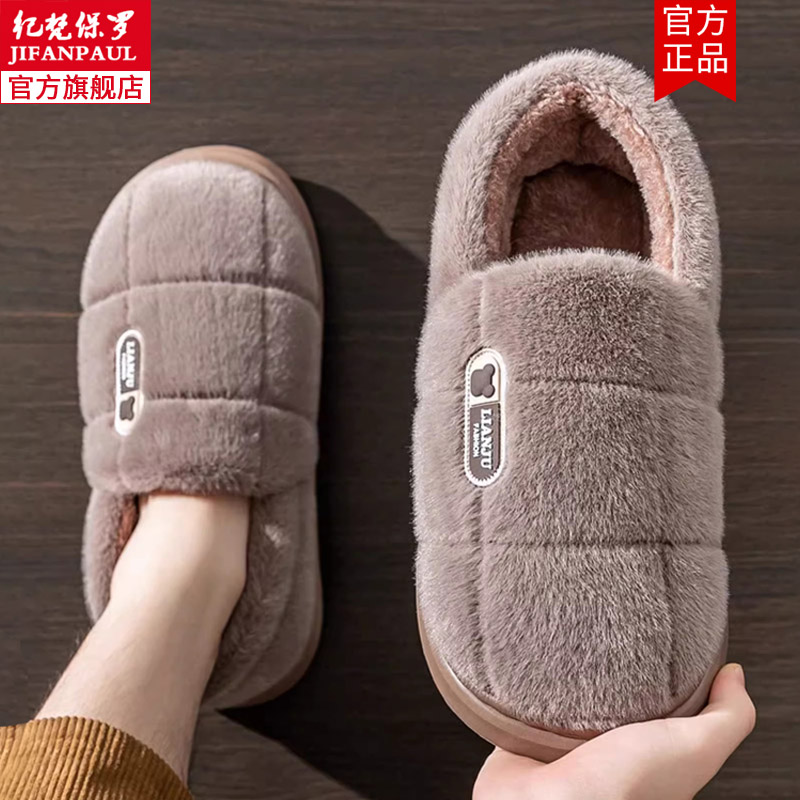 朴西男士全包跟棉拖鞋静音冬季加绒加厚软底情侣室内保暖棉拖鞋女