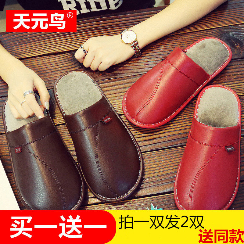 皮拖鞋秋冬季居家室内情侣防滑地板厚底皮托鞋男女保暖棉拖鞋韩式