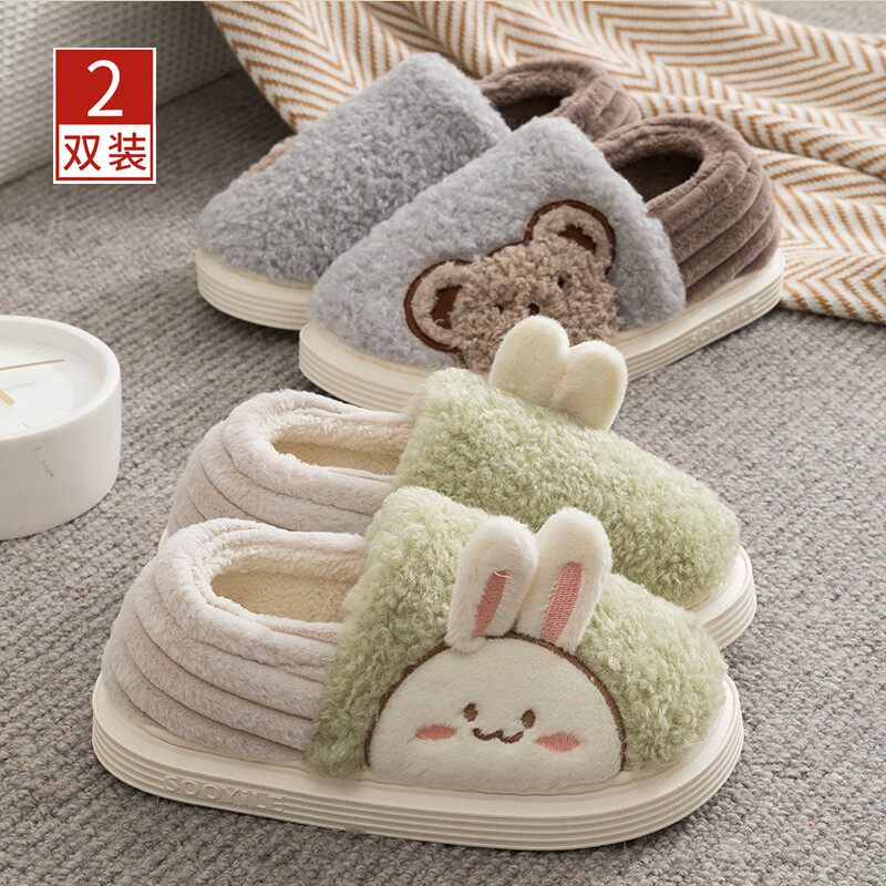 买1送1棉拖鞋女冬可爱包跟情侣居家用厚底毛绒保暖防滑室内棉鞋男