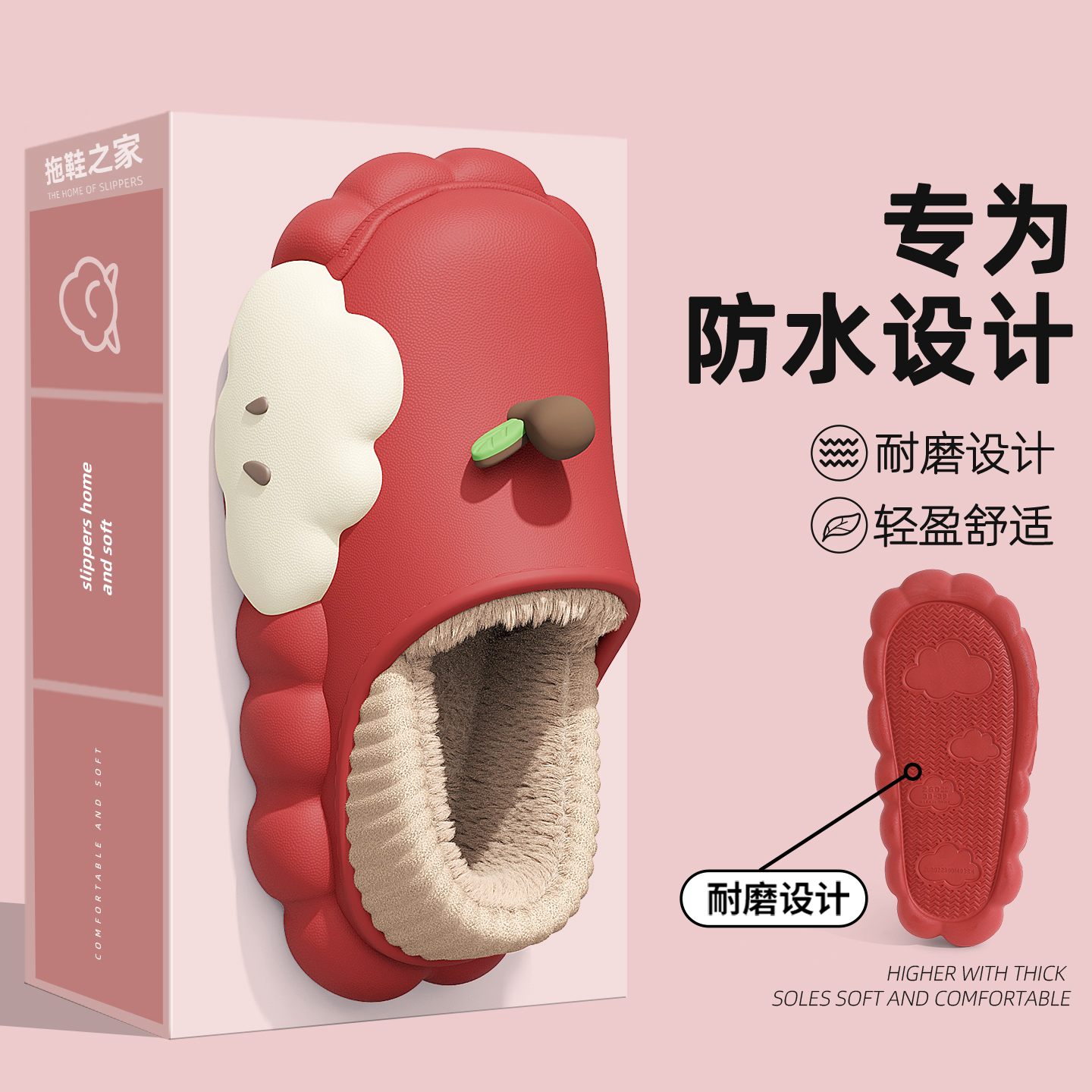 防水棉拖鞋女款时尚洋气毛绒外穿厚底防滑2025新款秋冬季保暖棉拖
