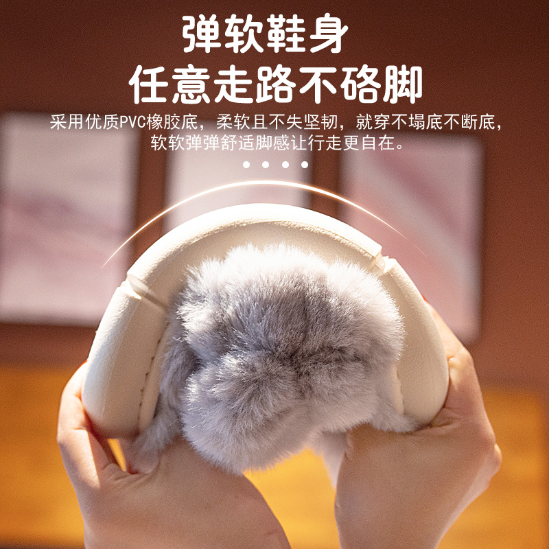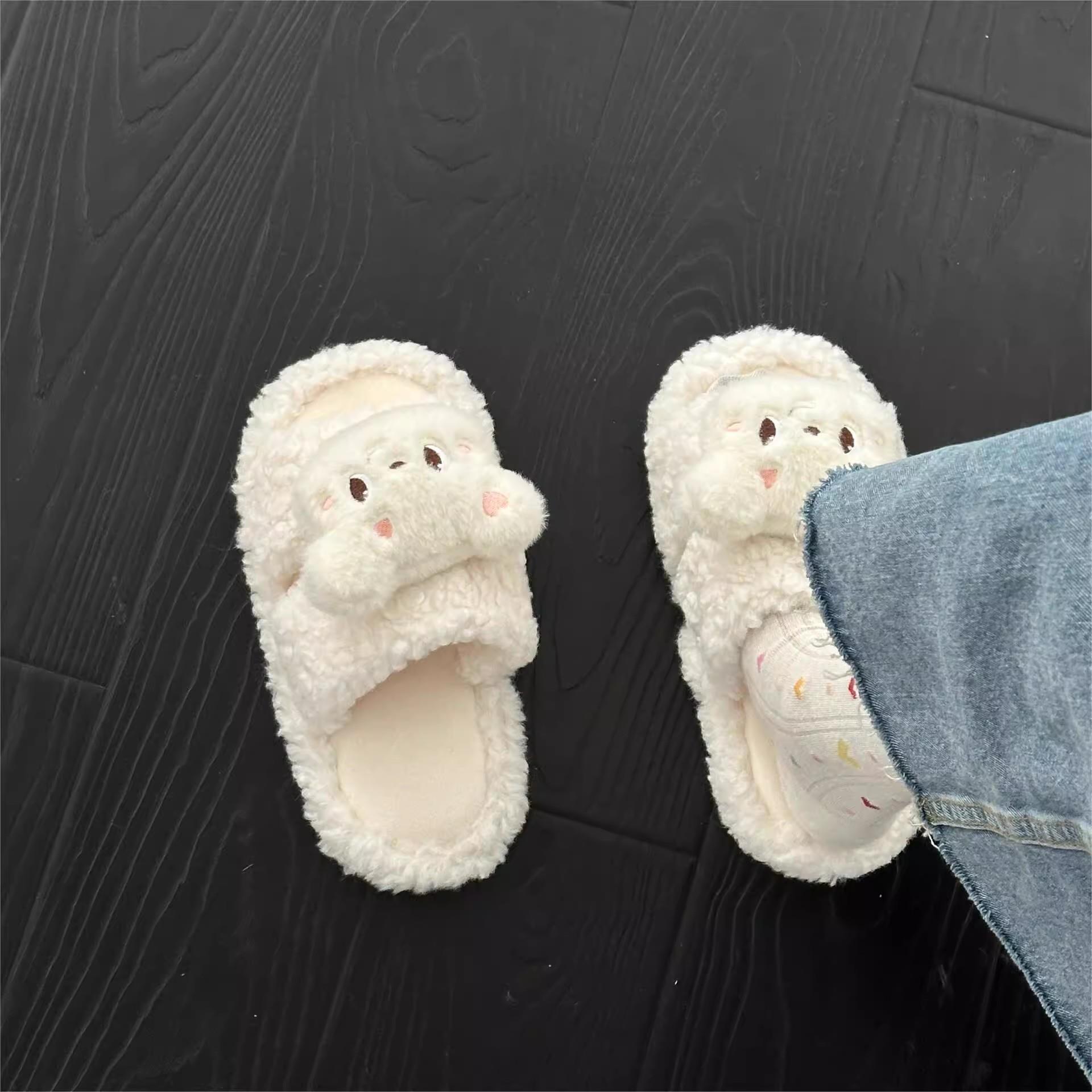小熊毛毛拖鞋女外穿秋冬毛绒茸茸室内家居防滑白色棉拖鞋2024新款