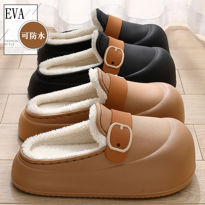 包头防水棉拖鞋男冬季2025新款室内家居防滑厚底保暖踩屎感棉拖女