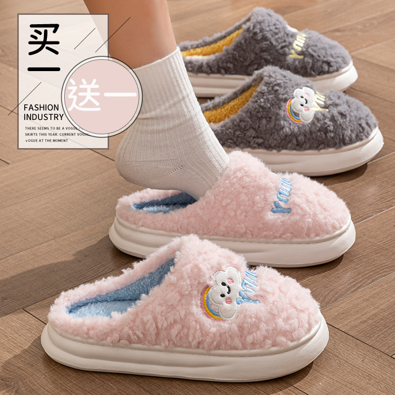 日本无印买1送1棉拖鞋女秋冬季2025新款室内家居情侣厚底毛绒保暖