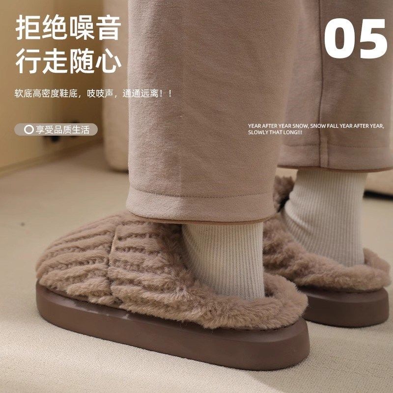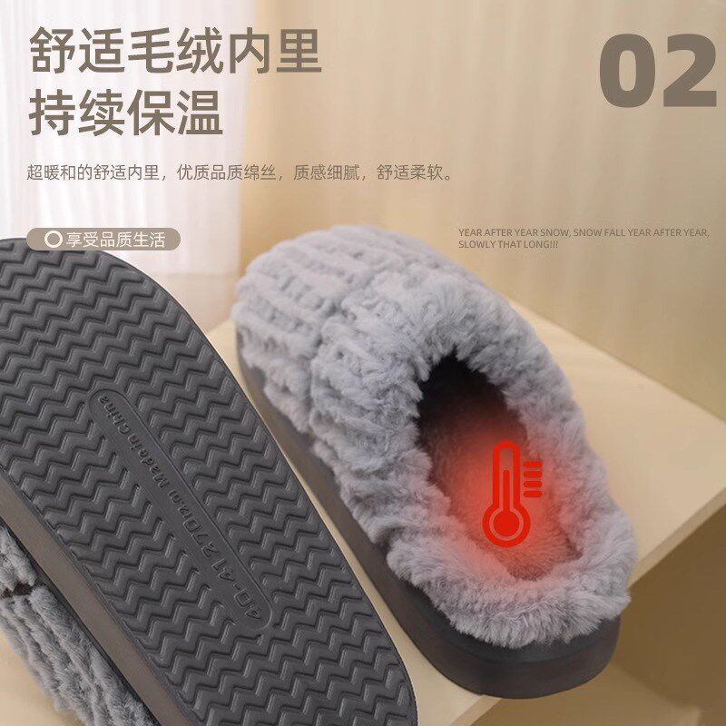秋冬季棉拖鞋女2025新款外穿防滑室内家居厚底加绒保暖毛绒拖鞋男