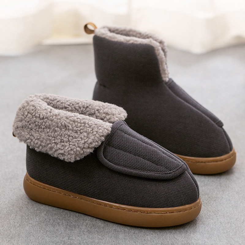 高筒包跟棉拖鞋男女老人冬加绒保暖家用牛筋厚底防滑中年外穿棉鞋