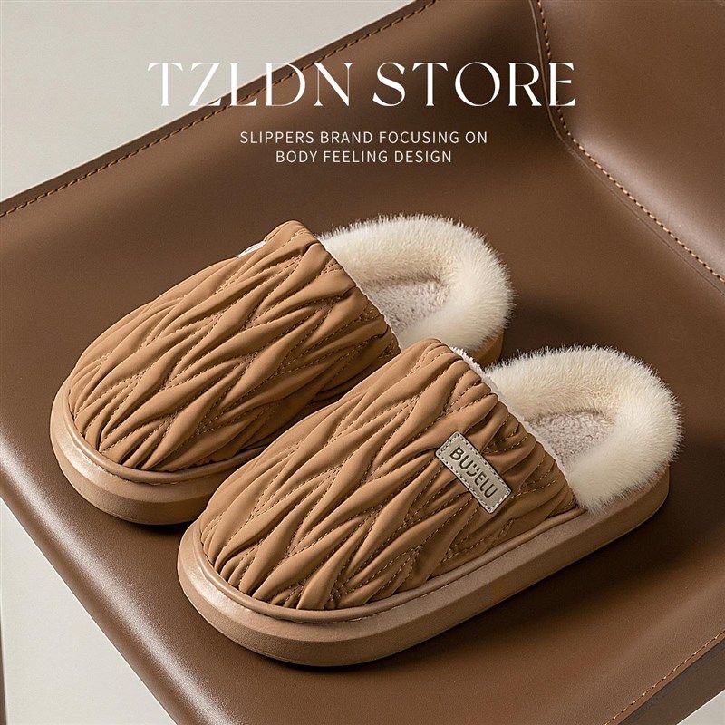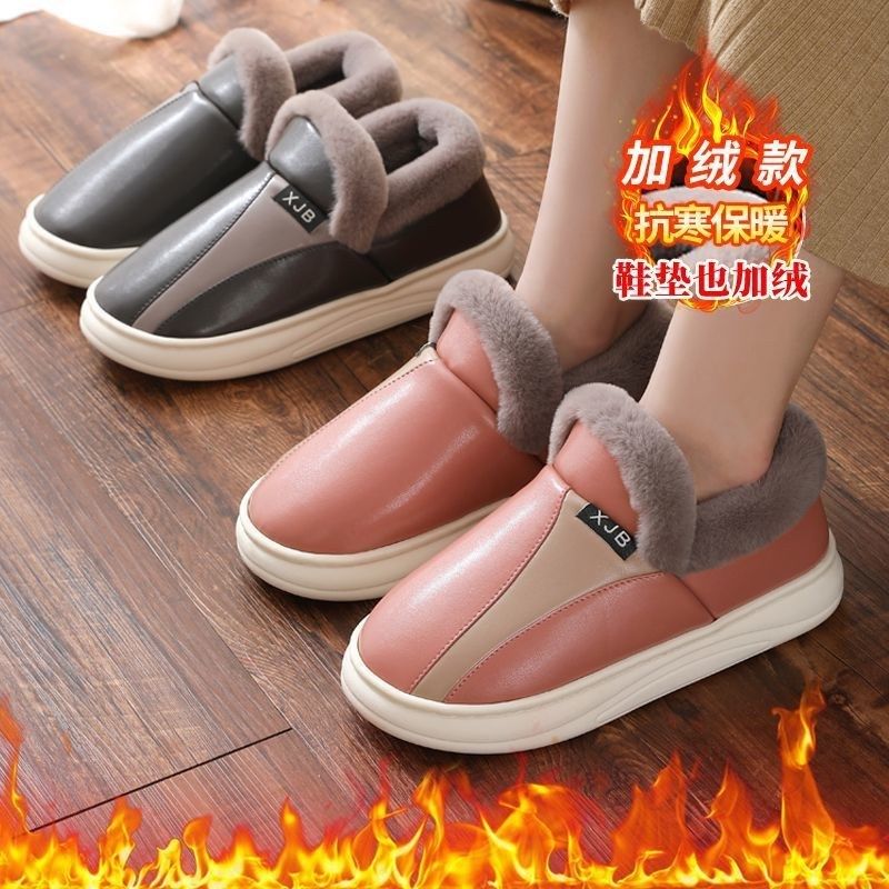 情侣棉拖鞋女秋冬季2024新款加绒室内家居一对防水皮拖鞋男士冬天