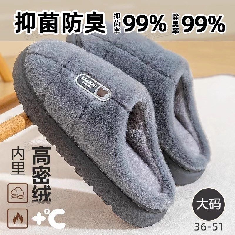 超大码棉拖鞋男士冬季室内居家厚底防滑保暖家用毛拖鞋男款秋冬天