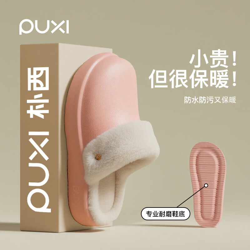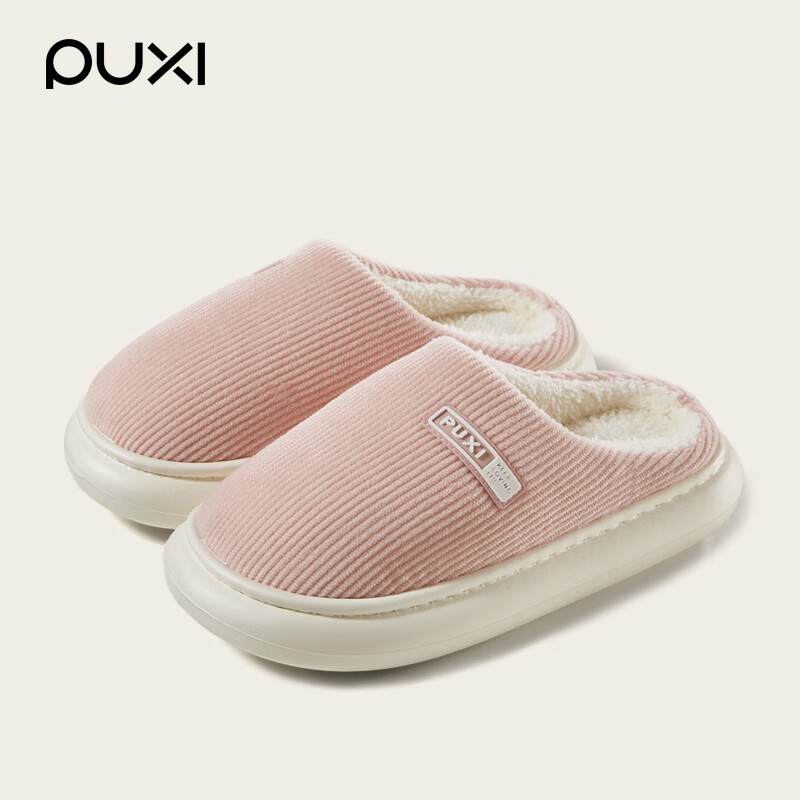 朴西踩屎感棉拖鞋女款防水冬季室内居家加绒保暖静音简约情侣棉拖鞋男 浅粉 【穿上仙气飘飘】 38-39 适合(37-38)