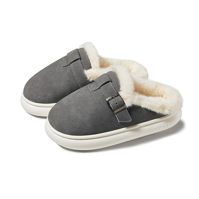 朴西女士居家雪地伴棉拖鞋室内保暖防滑厚底牛皮绒可外穿静音棉拖男 石墨灰 44-45