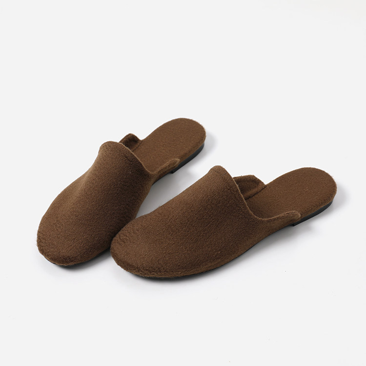 EL09001 茉莉雅集 R0*W简约全羊绒手工双面呢水波纹真皮大底拖鞋