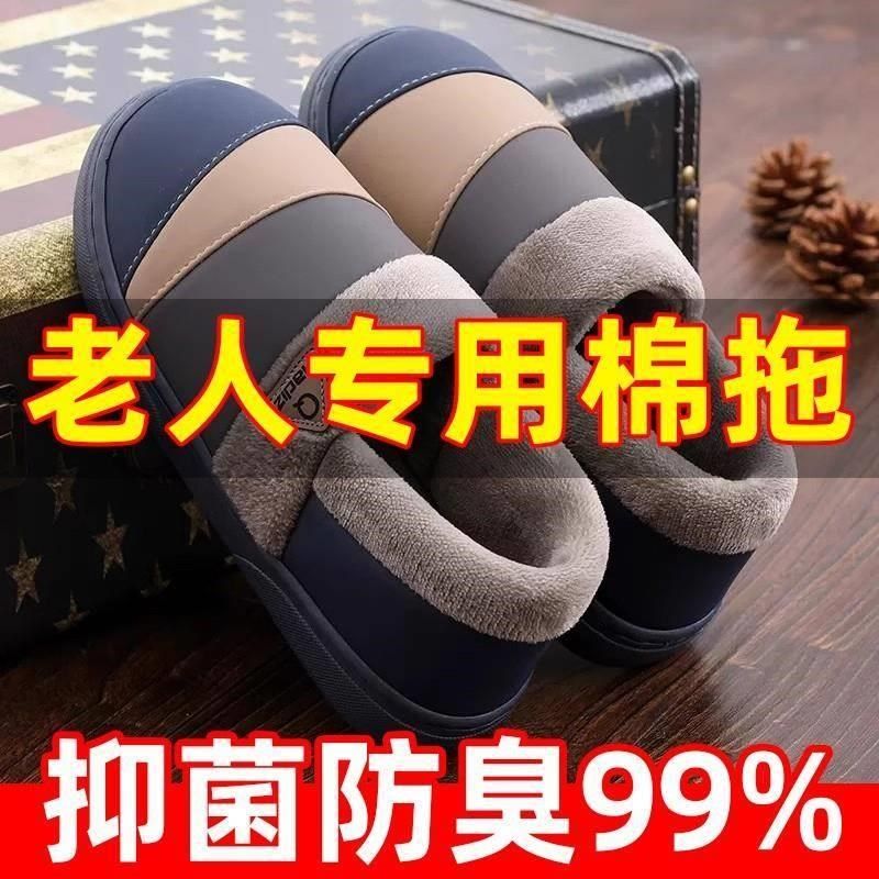 棉拖鞋防滑老人冬季室内家居保暖厚底全包跟防水加绒大码棉鞋男款
