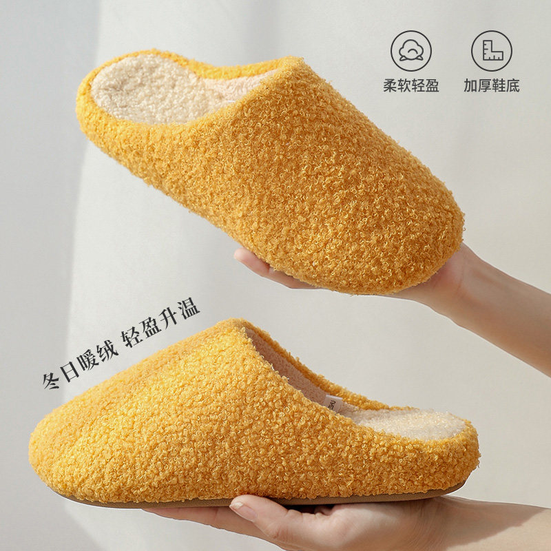 秋冬季简约素色家用情侣毛绒棉拖鞋女室内轻便防滑牛筋底轻声居家