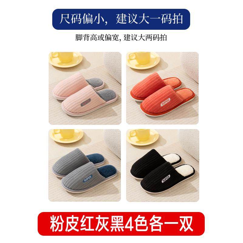 情侣款棉拖鞋女秋冬季室内一对保暖家居家用毛绒拖鞋男士冬天厚底