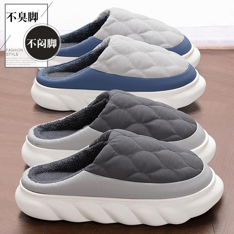 防水棉拖鞋男冬季踩屎感室内家居加绒保暖家用防风棉拖鞋女冬外穿