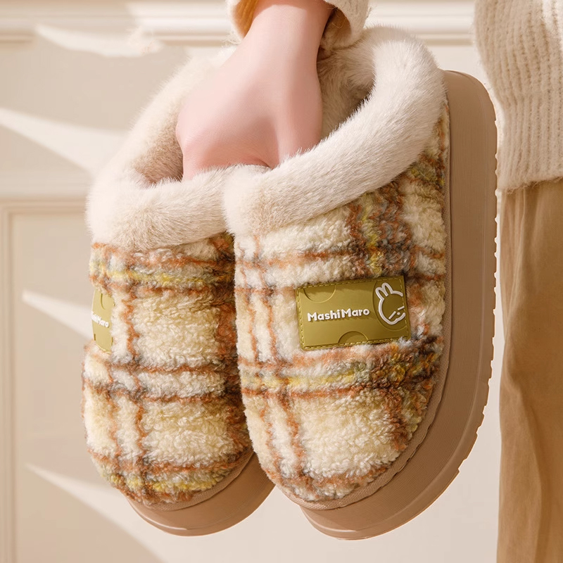日本无印棉拖鞋冬季包跟保暖2025新款家居室内厚底月子毛毛绒棉鞋