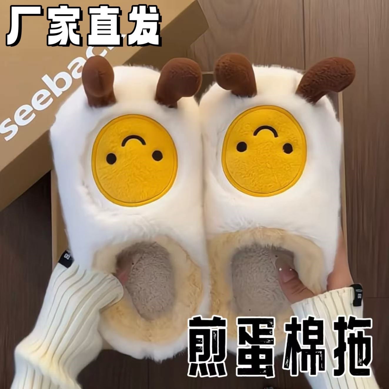 荷包蛋棉拖2025秋冬加绒加厚保暖毛绒拖鞋创意可爱居家可外穿棉鞋