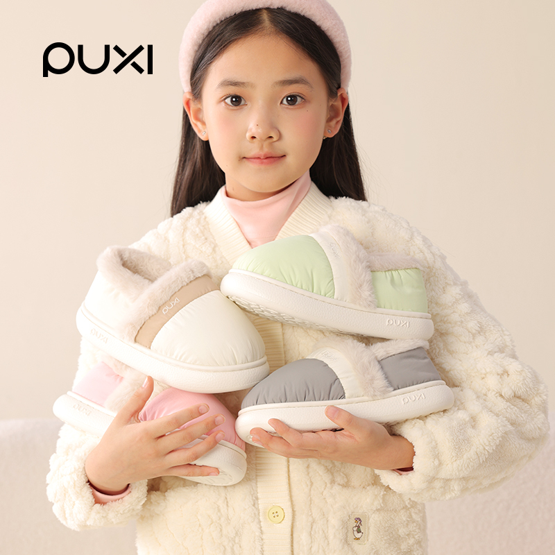 朴西儿童防水保暖棉拖鞋冬季新款居家男女童室内防滑静音简约棉鞋