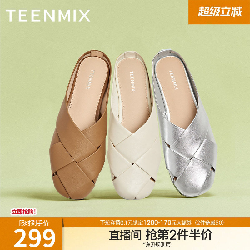 天美意平底罗马包头半拖鞋女外穿凉拖穆勒鞋夏季新款KT087BH5