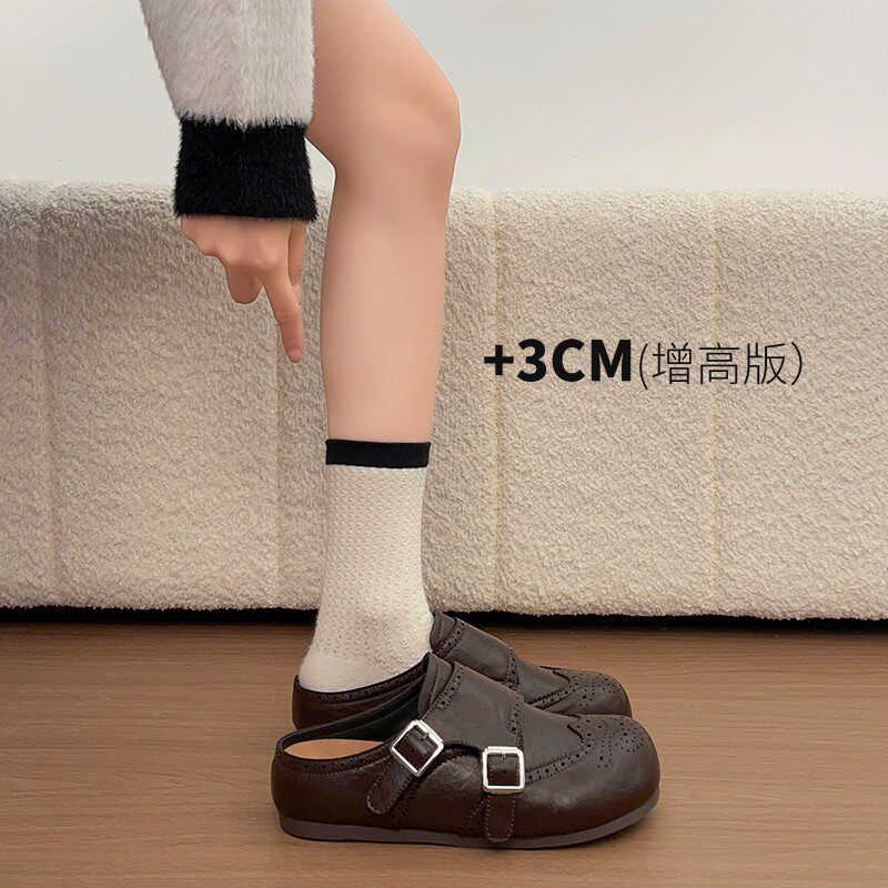 真皮雕花布洛克勃肯鞋厚底包头半拖鞋女外穿2026新款春季穆勒单鞋