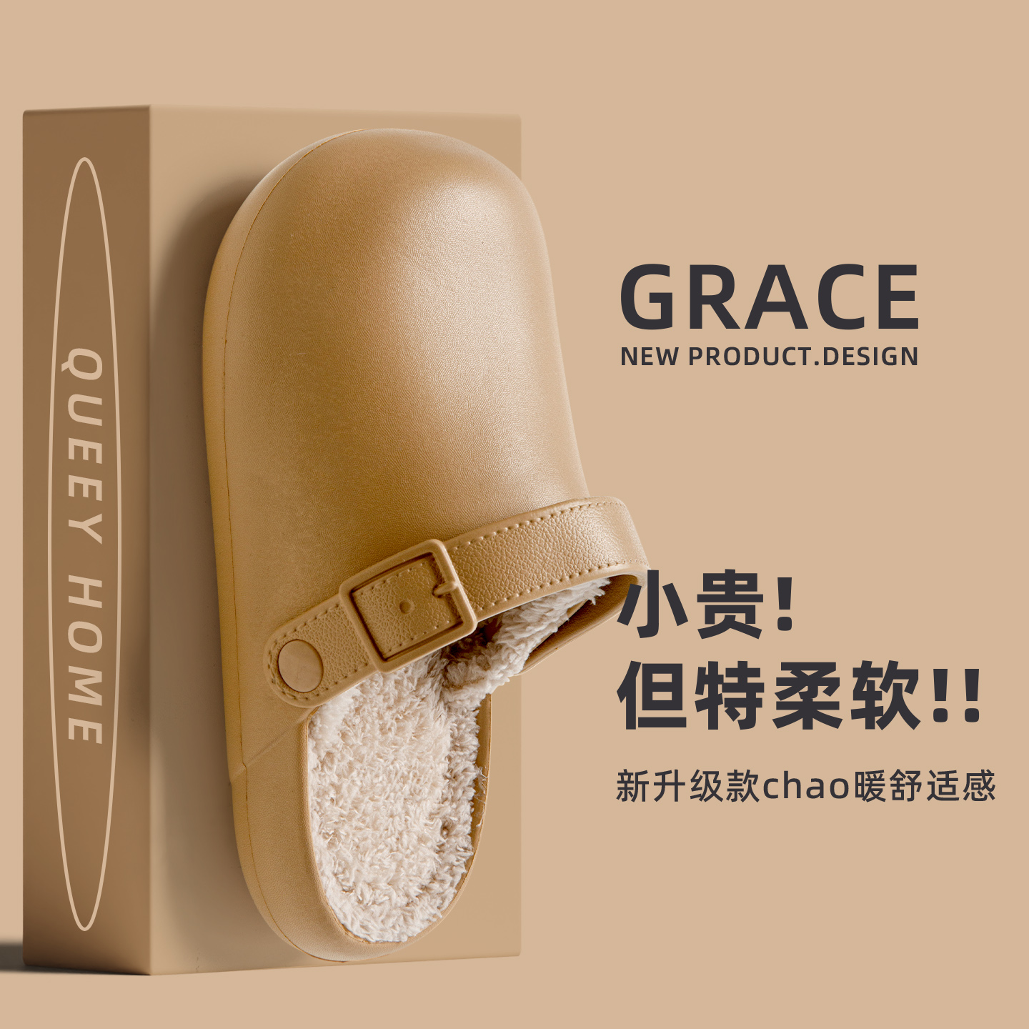 包头防水棉拖鞋女冬季2025新款室内家居抑菌防臭毛绒保暖静音棉拖