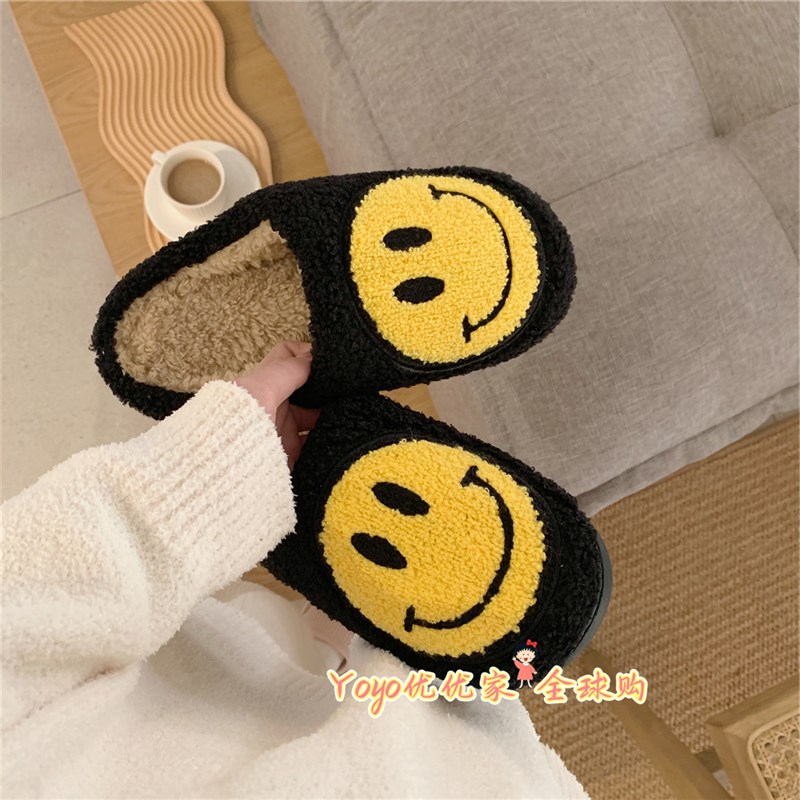 居家秋冬男女拖鞋棉拖竖条纹笑脸款棉拖鞋