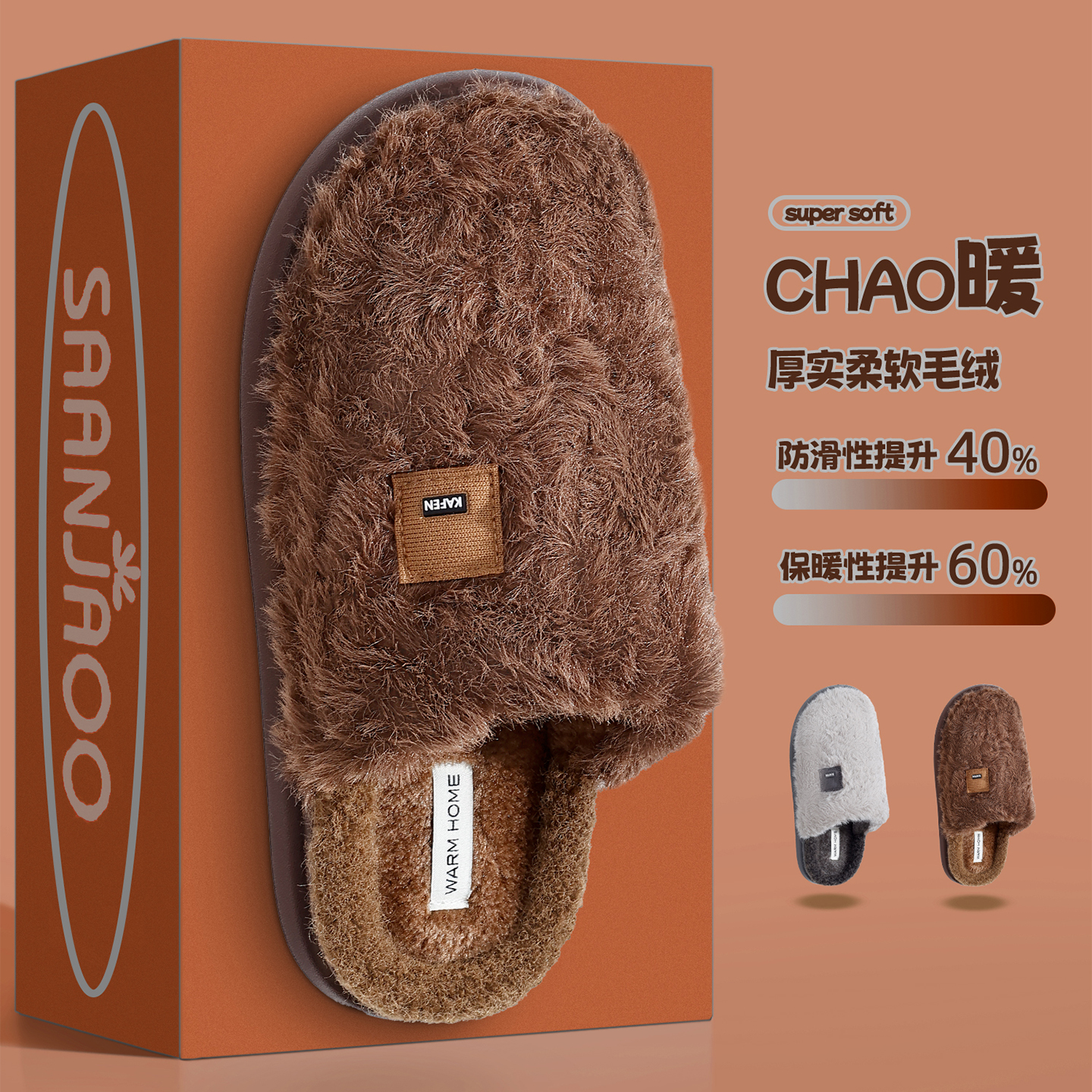 成人棉拖鞋秋冬季情侣2025防滑室内家居家用保暖厚底毛毛男士拖鞋