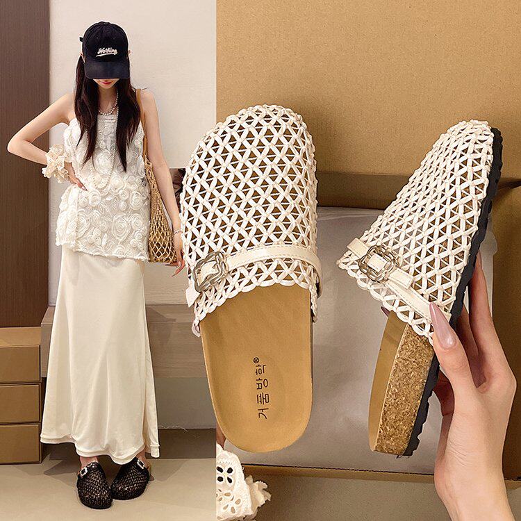 爆款镂空编织半拖鞋女夏季2026新款超火网纱凉拖渔网透气包头凉鞋