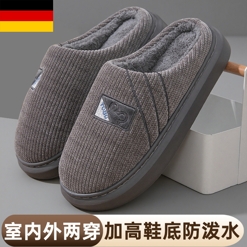 德国居家棉拖鞋男冬季女厚底保暖防滑家居室内家用冬天毛拖鞋大码