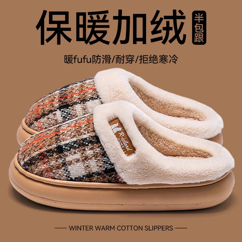 严选情侣棉拖鞋冬季家用居家棉拖女室内防滑家居加绒保暖男女棉鞋