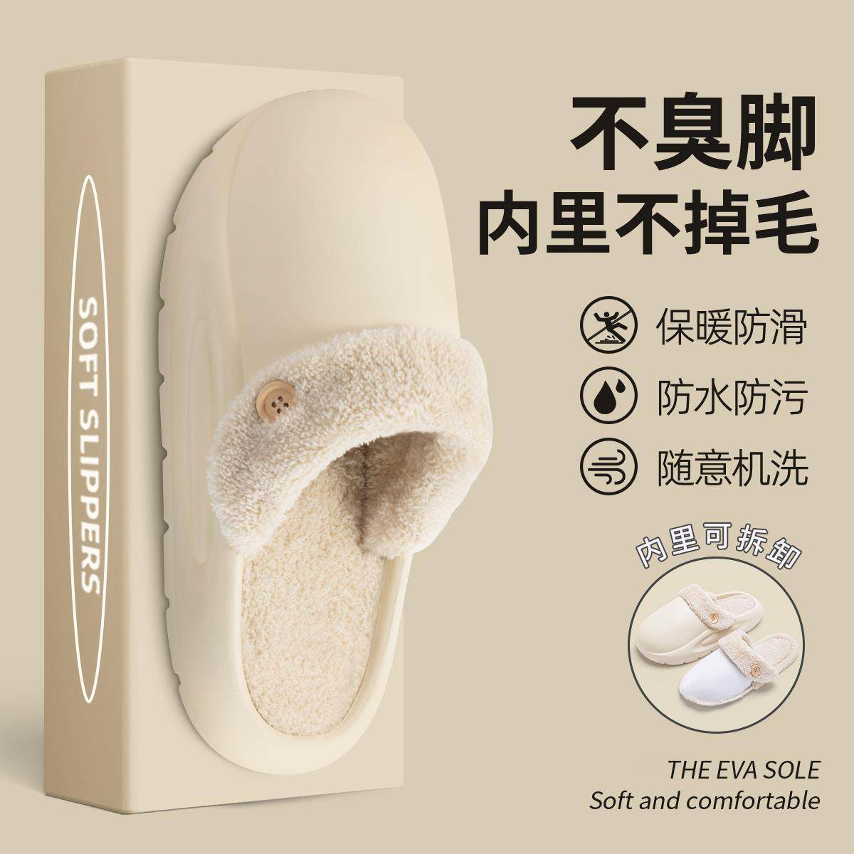 棉拖鞋女款2025新款爆款外穿厚款可卸拆加绒防滑耐磨室内居家棉拖
