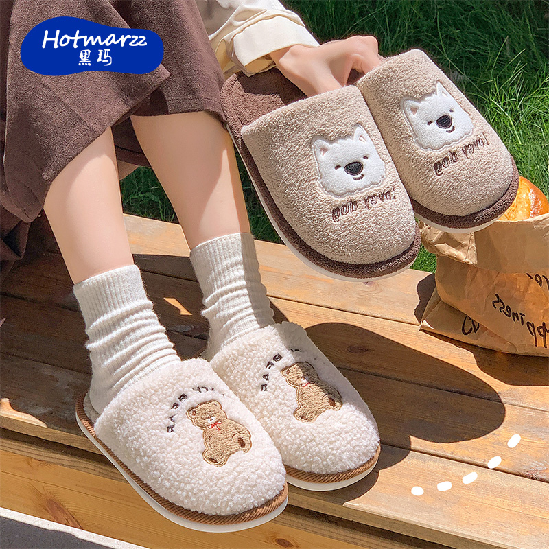 hotmarzz/黑玛棉拖鞋女款冬季2025新款室内家居保暖毛绒拖鞋男士