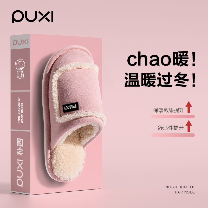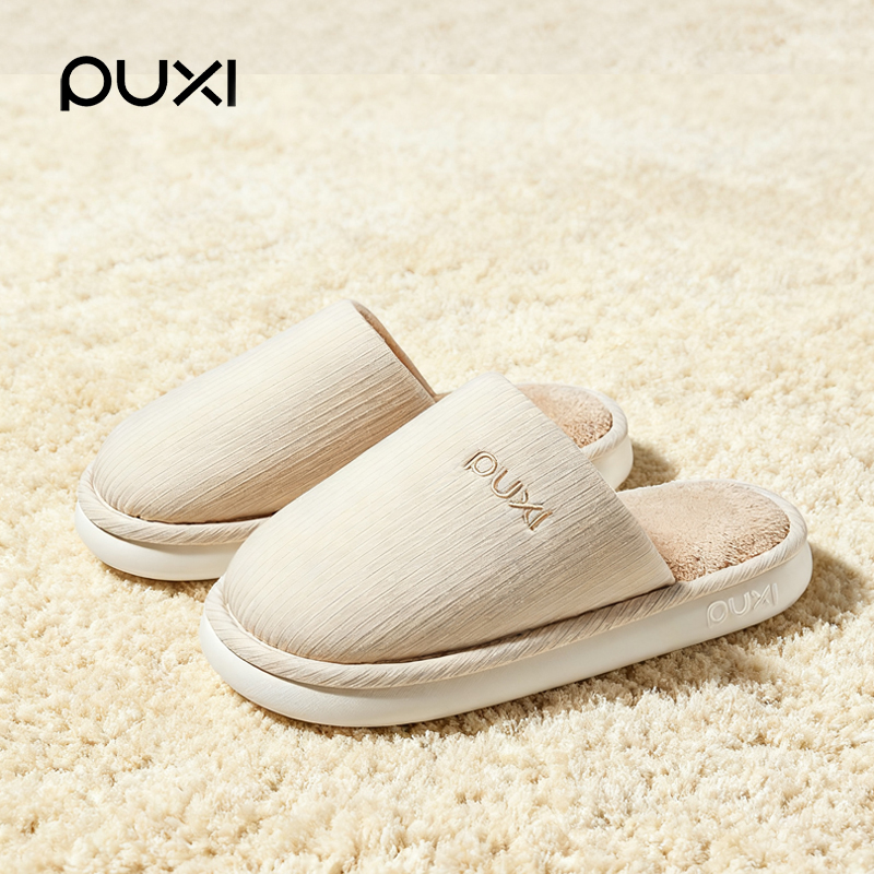 朴西保暖软底防滑棉布拖鞋女四季居家室内静音简约不沾毛棉拖男