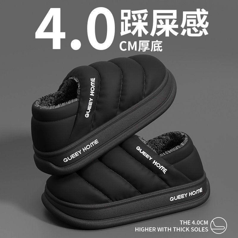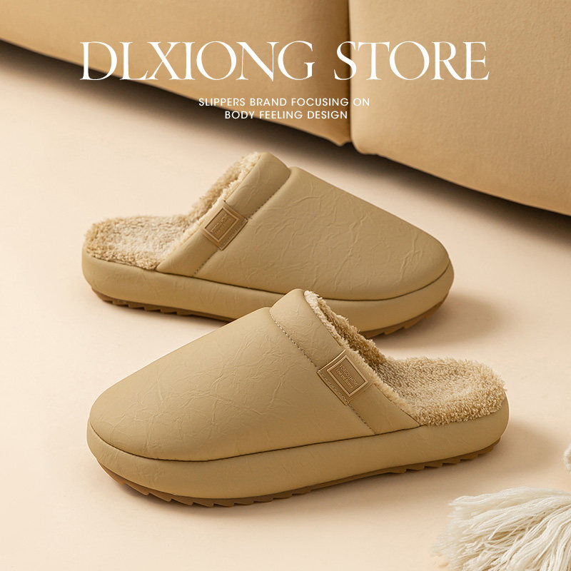 高端防水棉拖鞋女秋冬季家居室内地板皮拖厚底防滑男办公保暖加绒