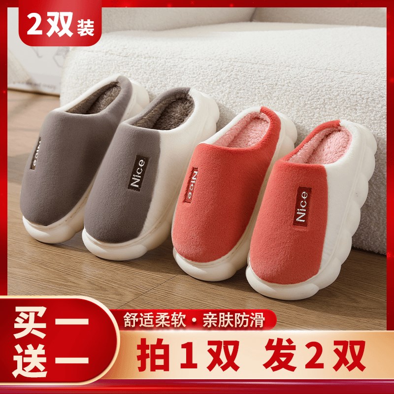 速发买一送一厚底棉拖鞋保暖防滑居家情侣加绒秋冬季毛绒加厚男毛