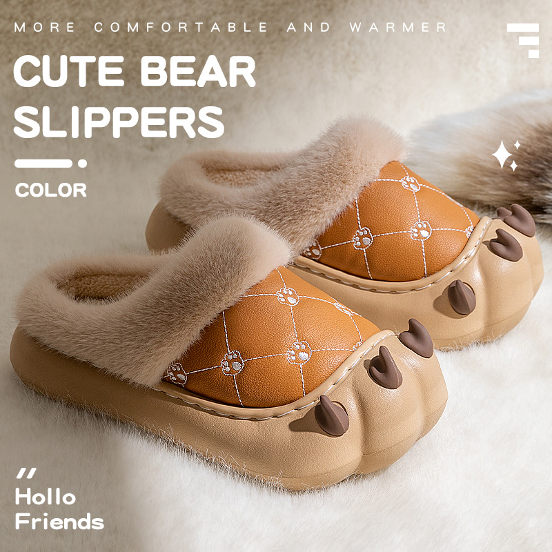 可爱熊爪女款棉拖鞋2025款秋冬季室内家居防滑保暖防水毛毛棉鞋女