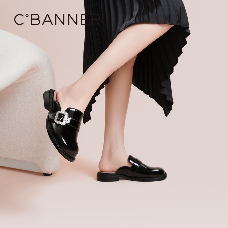 千百度女鞋夏季新款水钻包头拖奢华小香风勃肯鞋气质舒适拖鞋