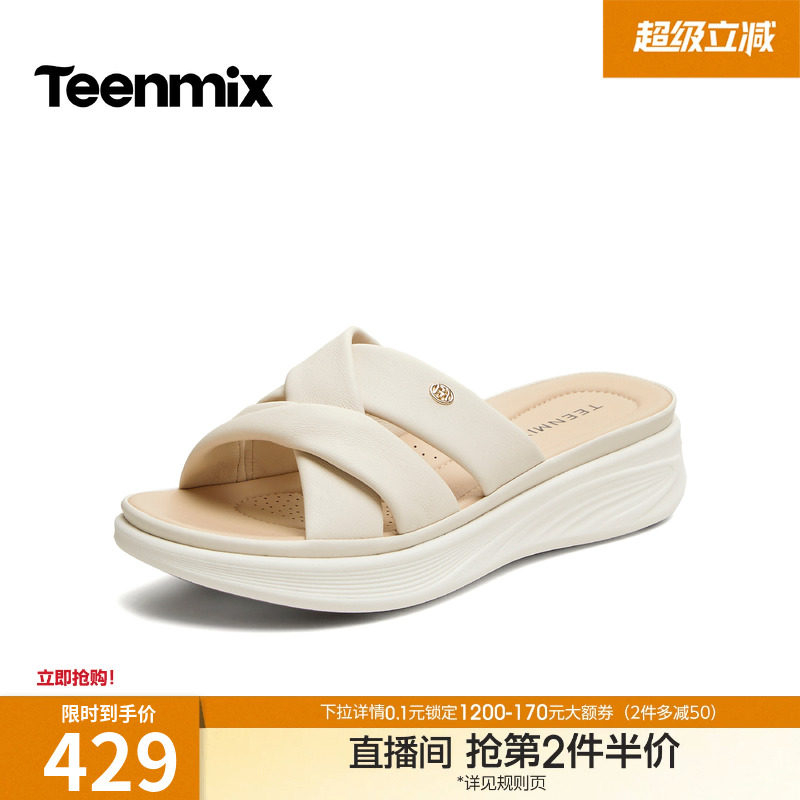 天美意一字拖休闲坡跟厚底拖鞋女外穿凉拖鞋2026夏季新款BK982BT6