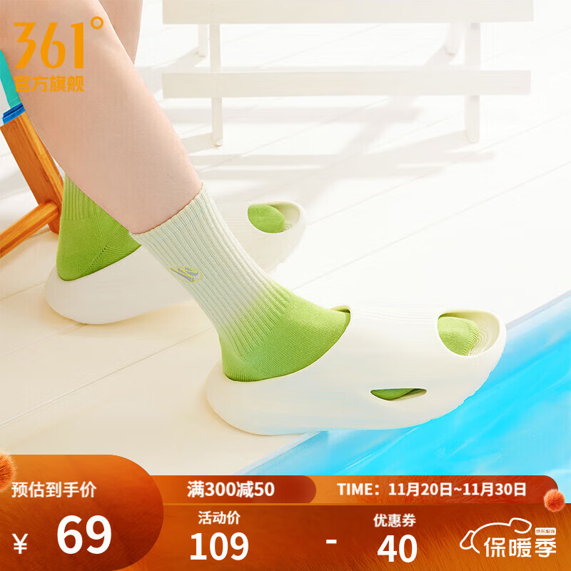 361°拖鞋男女BIG3夏季新款家居户外情侣运动凉拖鞋厚底沙滩软底凉鞋 羽毛白 40