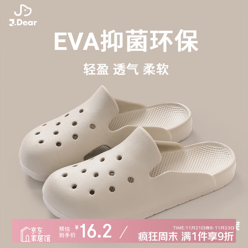 Home Story×JDear京东联名 EVA防臭超软洞洞鞋拖鞋男士 奶茶 43-44