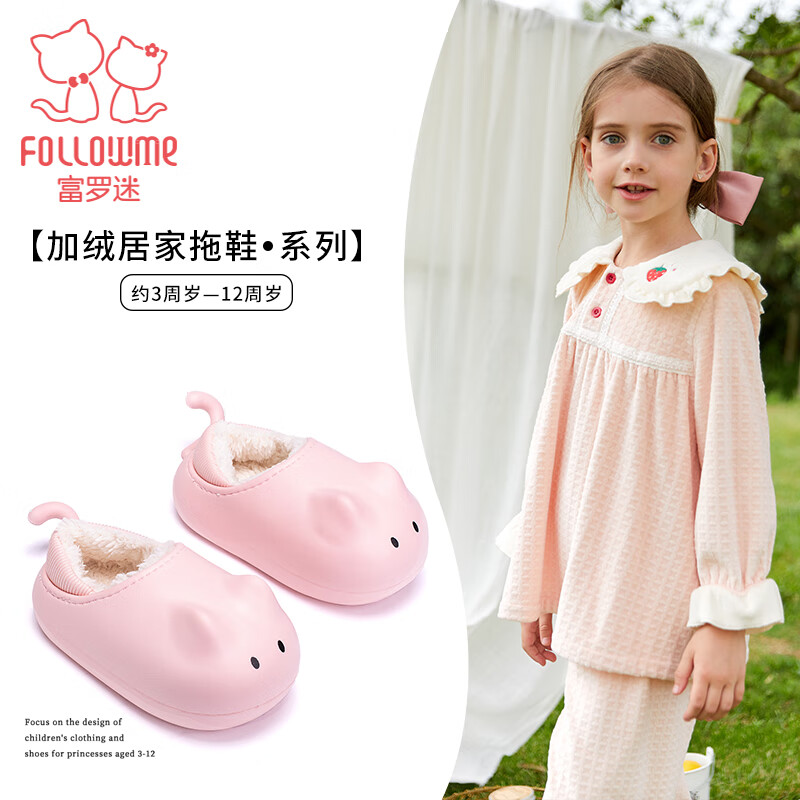富罗迷女童拖鞋冬季可爱小猫加绒保暖棉拖鞋儿童防水防滑家居鞋 粉色 31