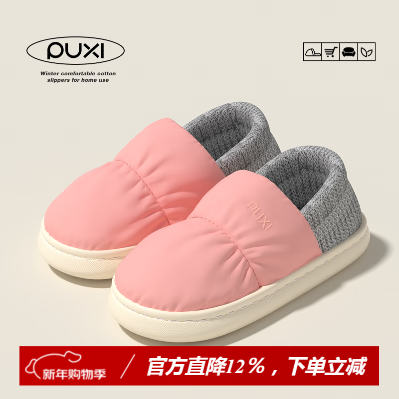 朴西保暖棉拖鞋女秋冬季新款居家软底防滑室内静音简约情侣棉拖男