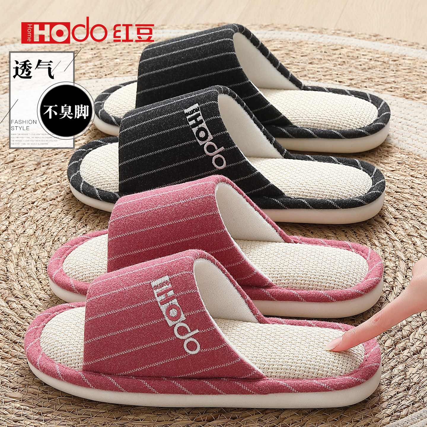 红豆亚麻拖鞋女款2026新款四季室内家居透气吸汗防臭棉麻拖鞋女士