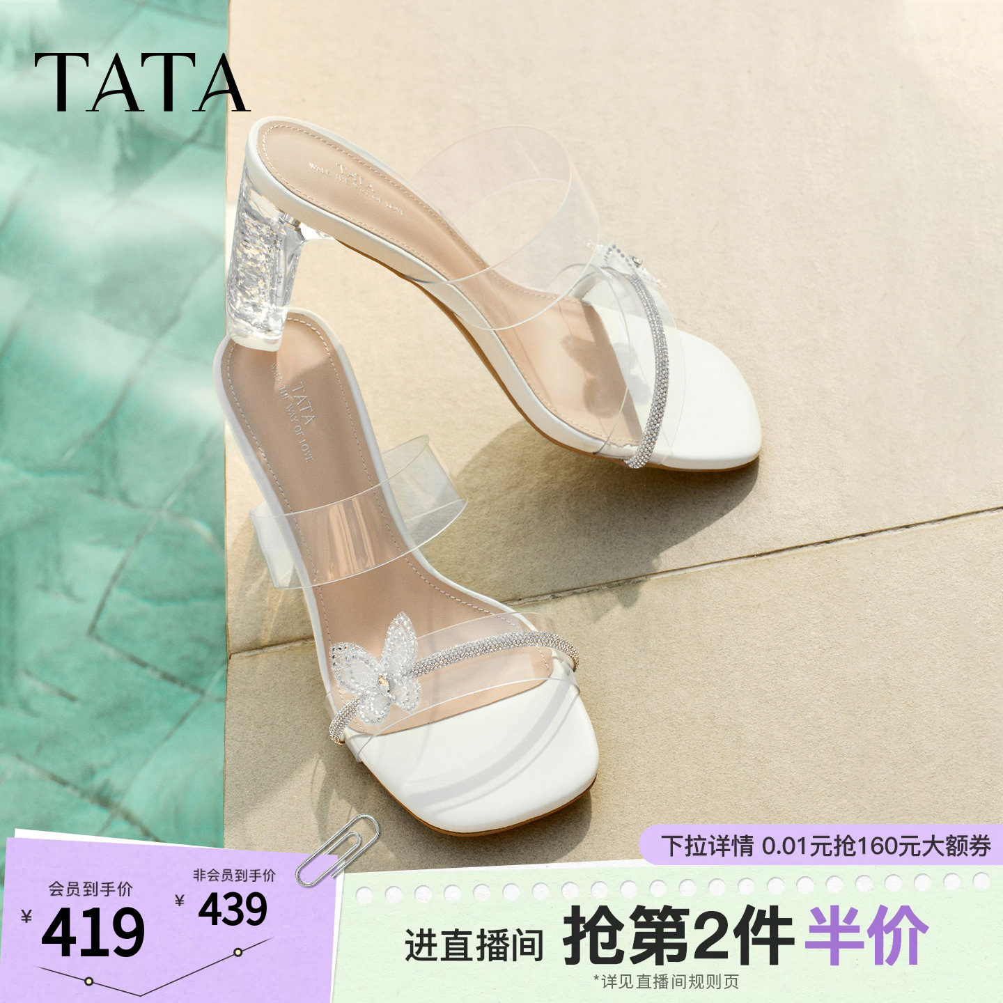 TATA他她女鞋2026夏季新款一字拖简约百搭拖鞋高跟凉鞋XEK06BT6