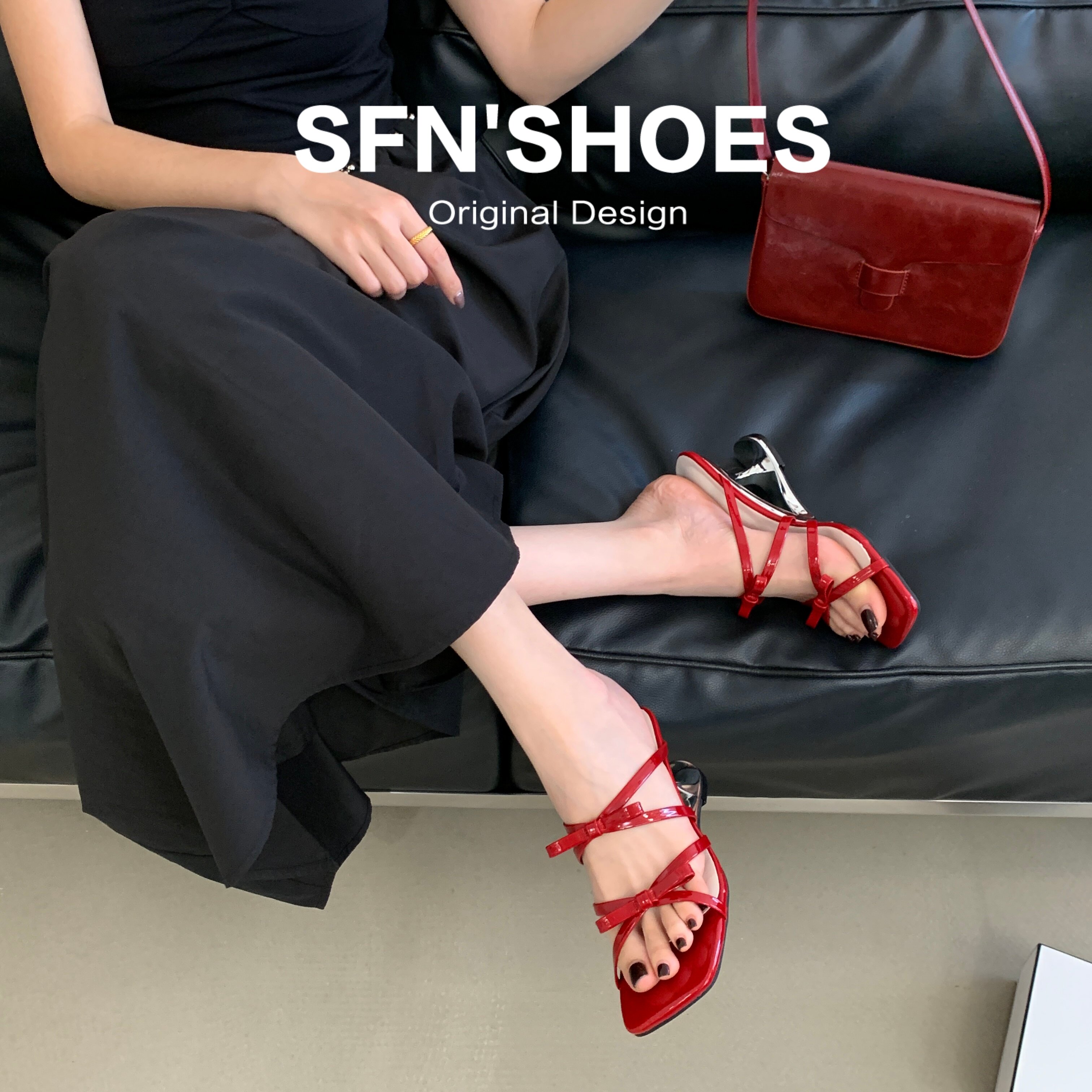 法式蝴蝶结一字拖女夏外穿2026新款细带高跟鞋坡跟露趾百搭凉拖鞋