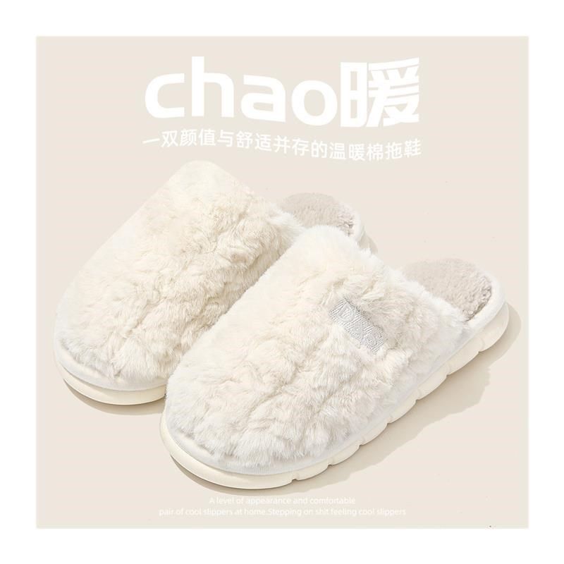 云朵里商店 软绵绵羽毛绒干净简约条纹居家静音保暖拖鞋情侣拖鞋