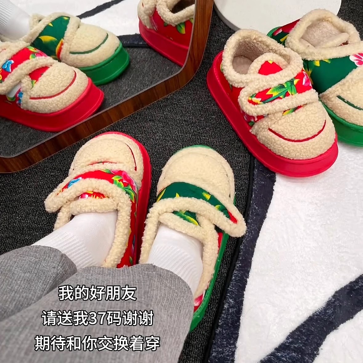 东北大花棉拖鞋室内家居鸳鸯包跟防滑保暖冬季加厚羊羔绒毛拖鞋