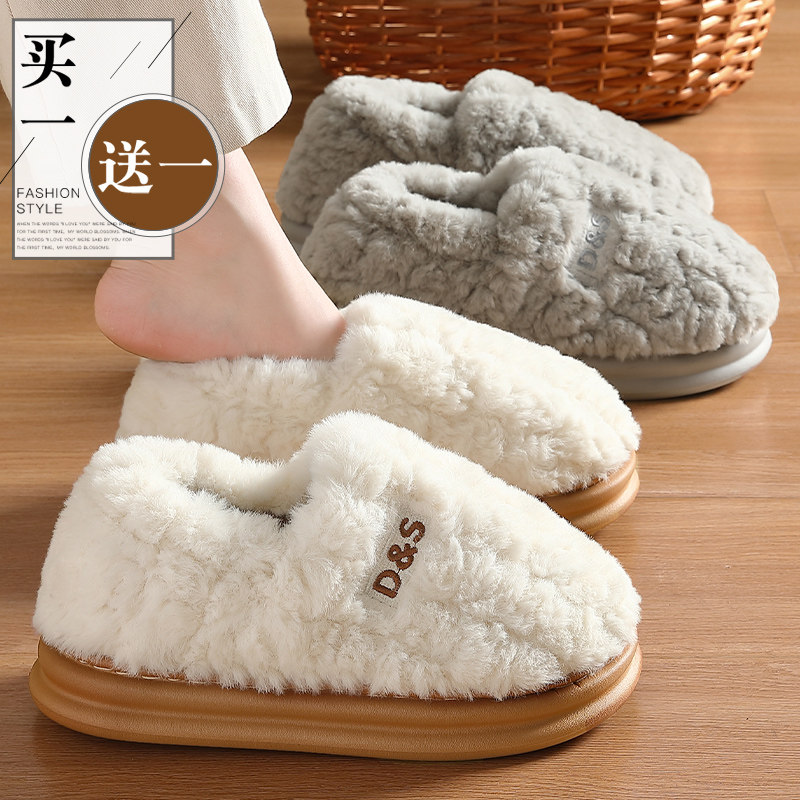 买1送1棉拖鞋女士冬季包跟2023新款室内家居情侣一对毛绒棉鞋男款