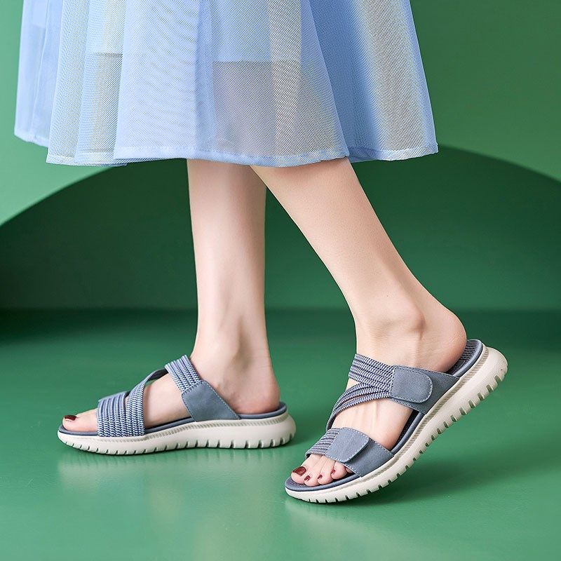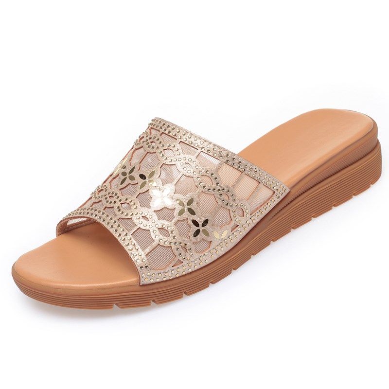 坡跟厚底拖鞋女夏外穿时尚网纱平B底凉拖妈妈一字拖中年女士凉鞋