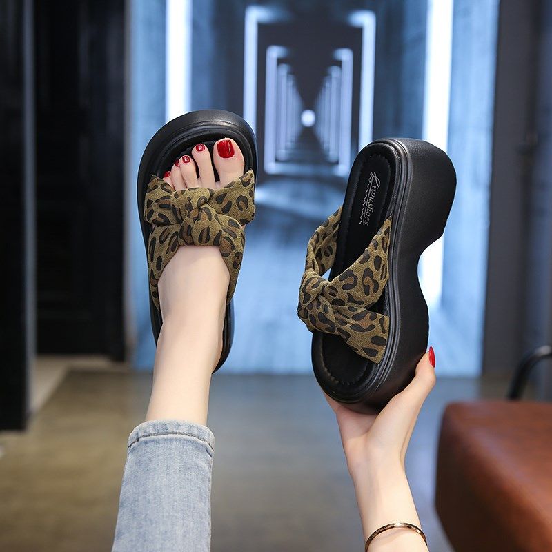 高级感厚底凉拖鞋女夏外穿202y5新款时尚气质豹纹松糕高跟沙滩凉
